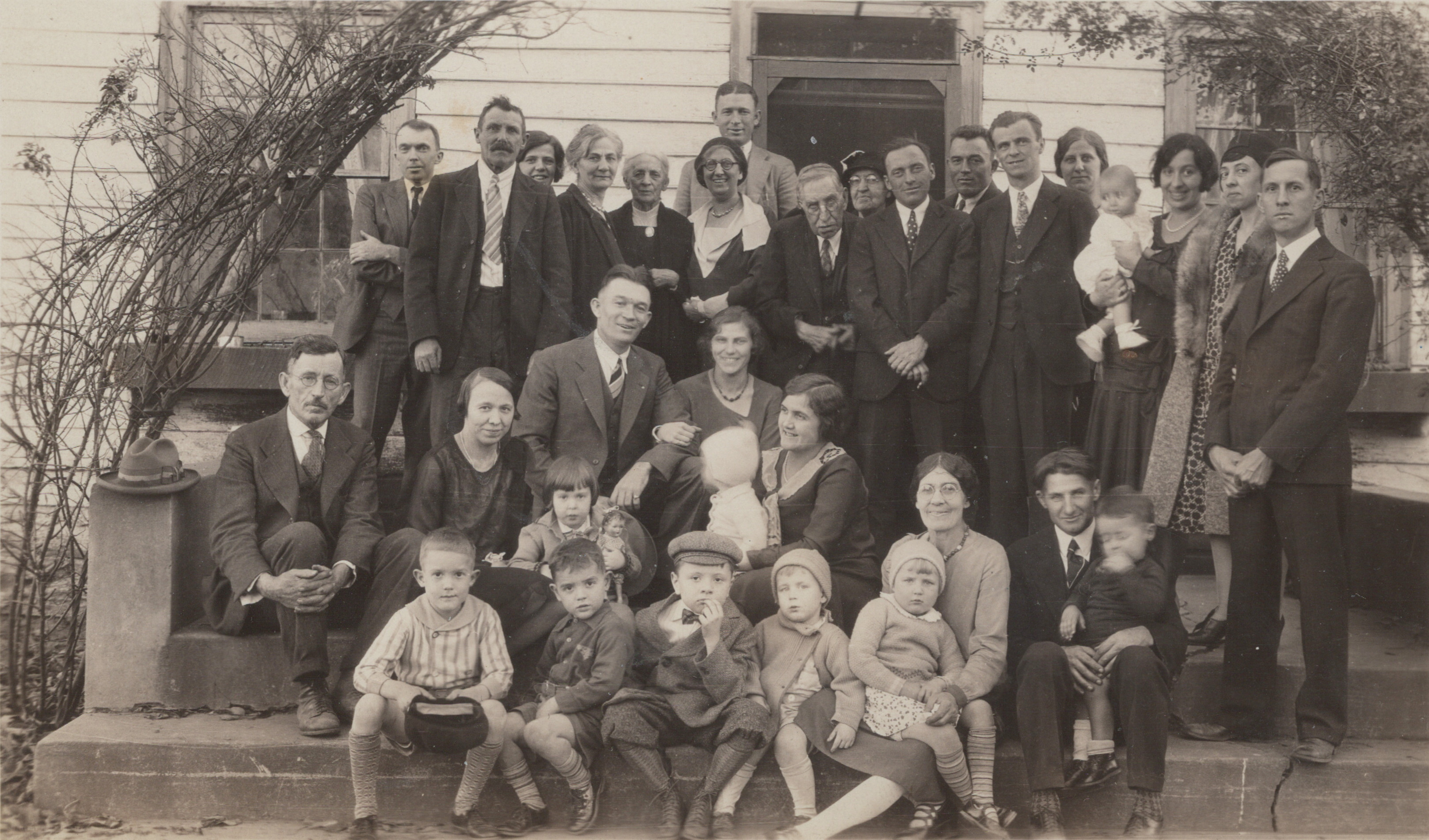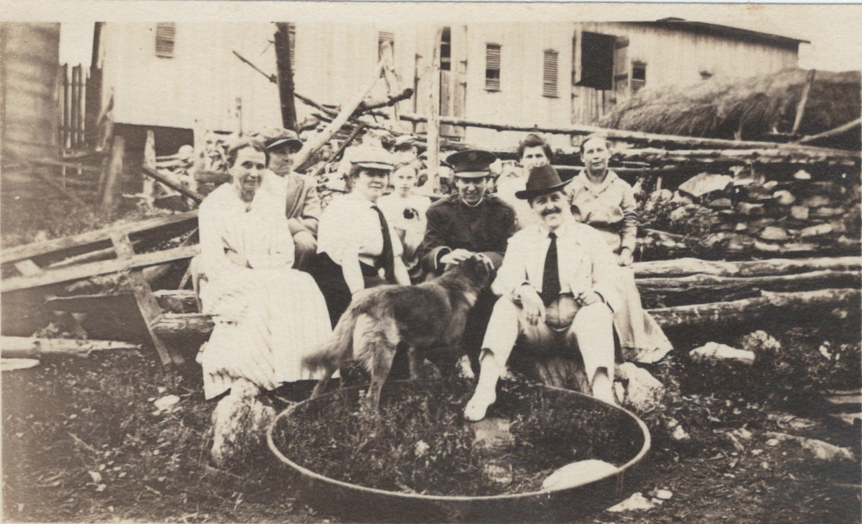 McDonald Family gathered on the side porch at Glencoe Farm in 1929. Ernest Faulkner McDonald is pictured on the left