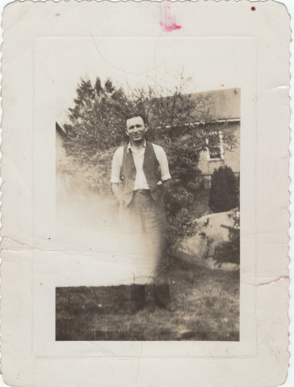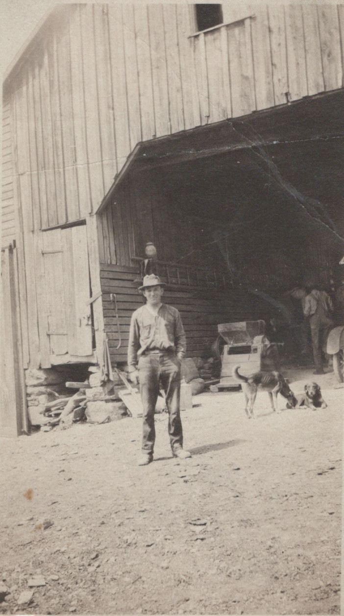 Richard Clyde McDonald (brother of Theodore Roosevelt McDonald) pictured in front of the workshop at Glencoe Farm