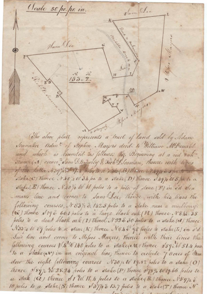 18th century survey plat for the tract of land purchased by William McDonald. This parcel is now known as Glencoe Farm