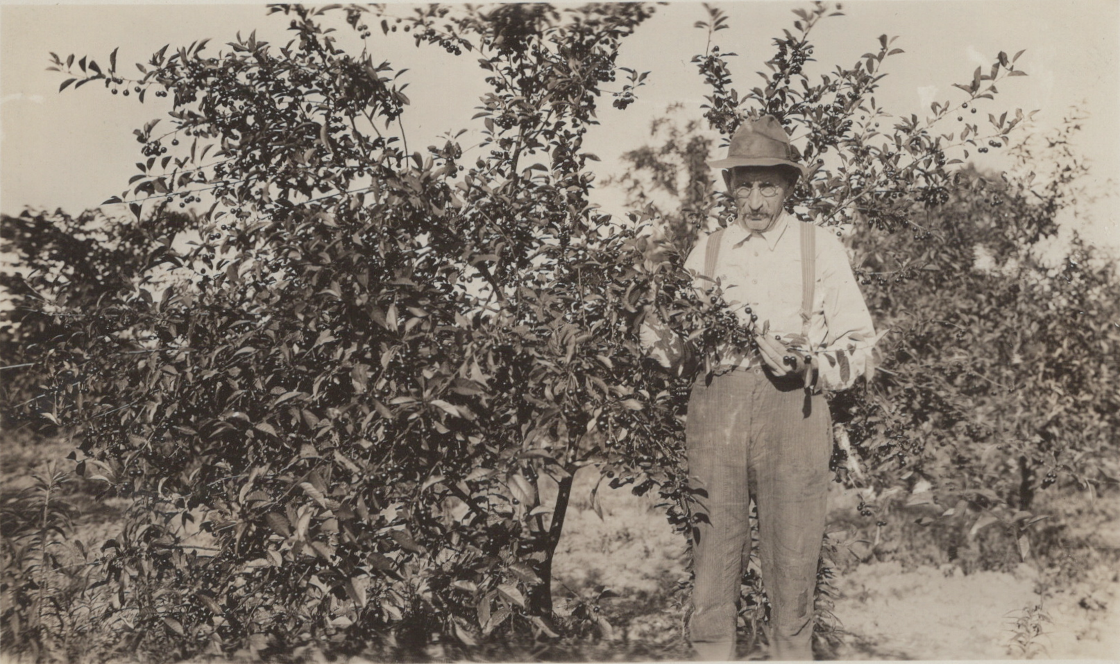 Ernest Faulkner McDonald pictured with a cherry tree on the "hill field" at Glencoe Farm