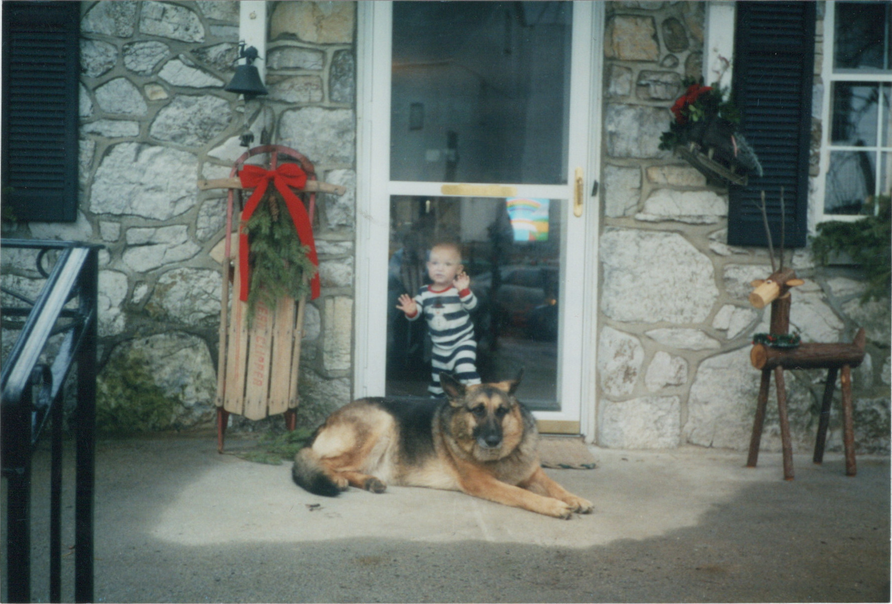 Liam McDonald and dog Zoey on the porch at Glencoe Farm, 2003