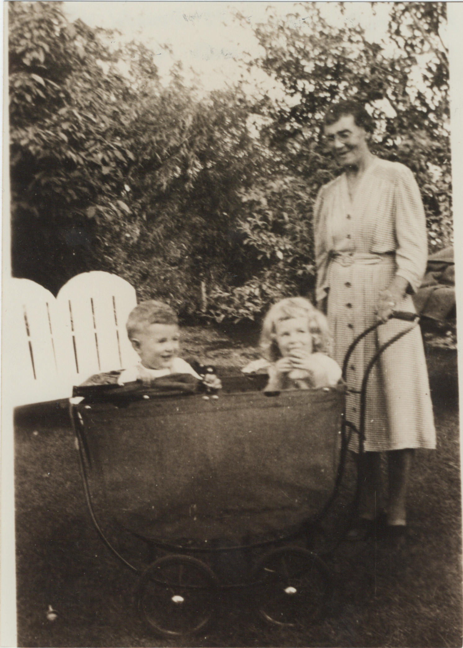"Grandma Mag" (right) with grandchildren Charles "Bub" McDonald (left) and Peggy McDonald (center)