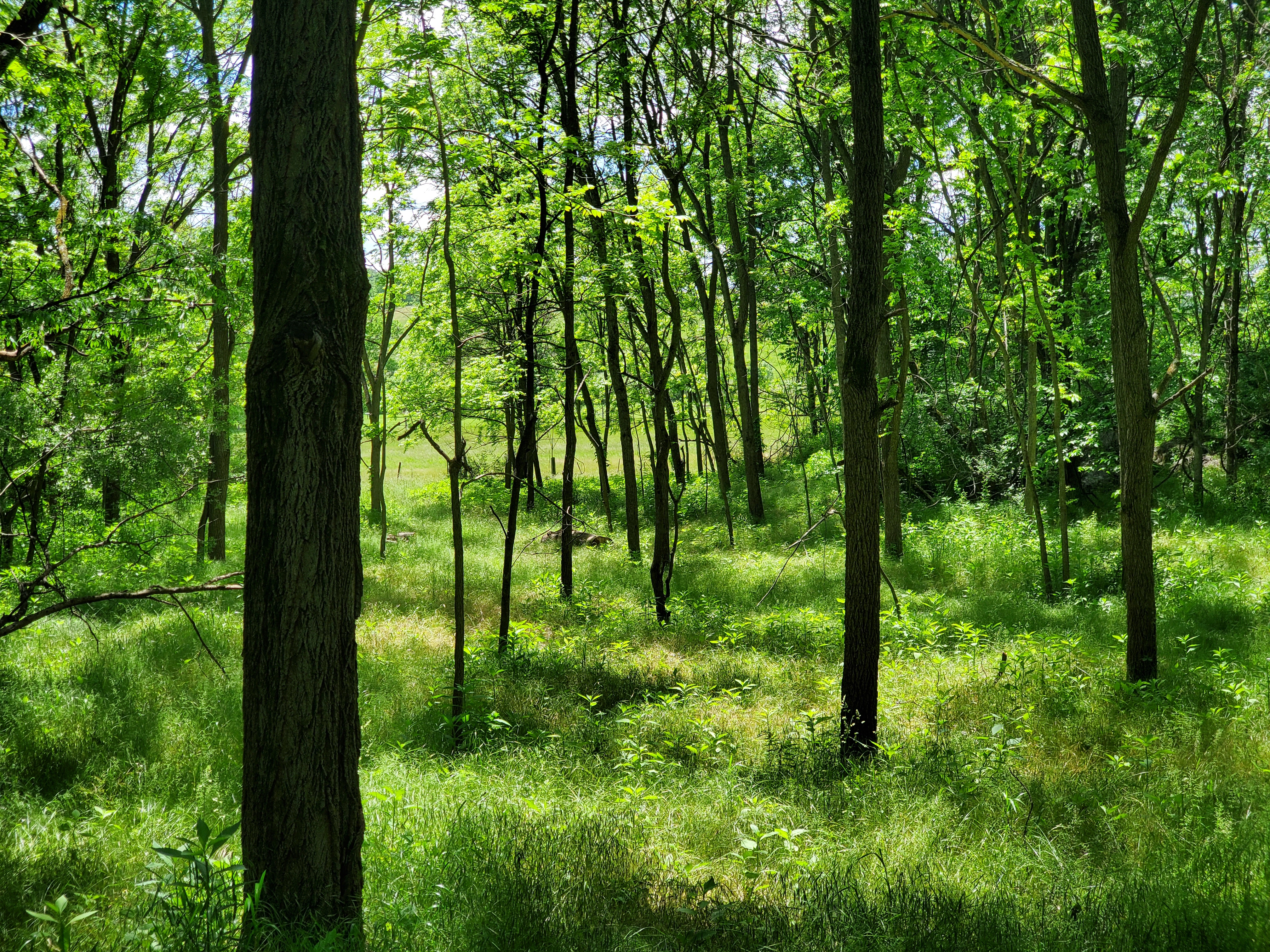 The forest is in the back corner of the farm